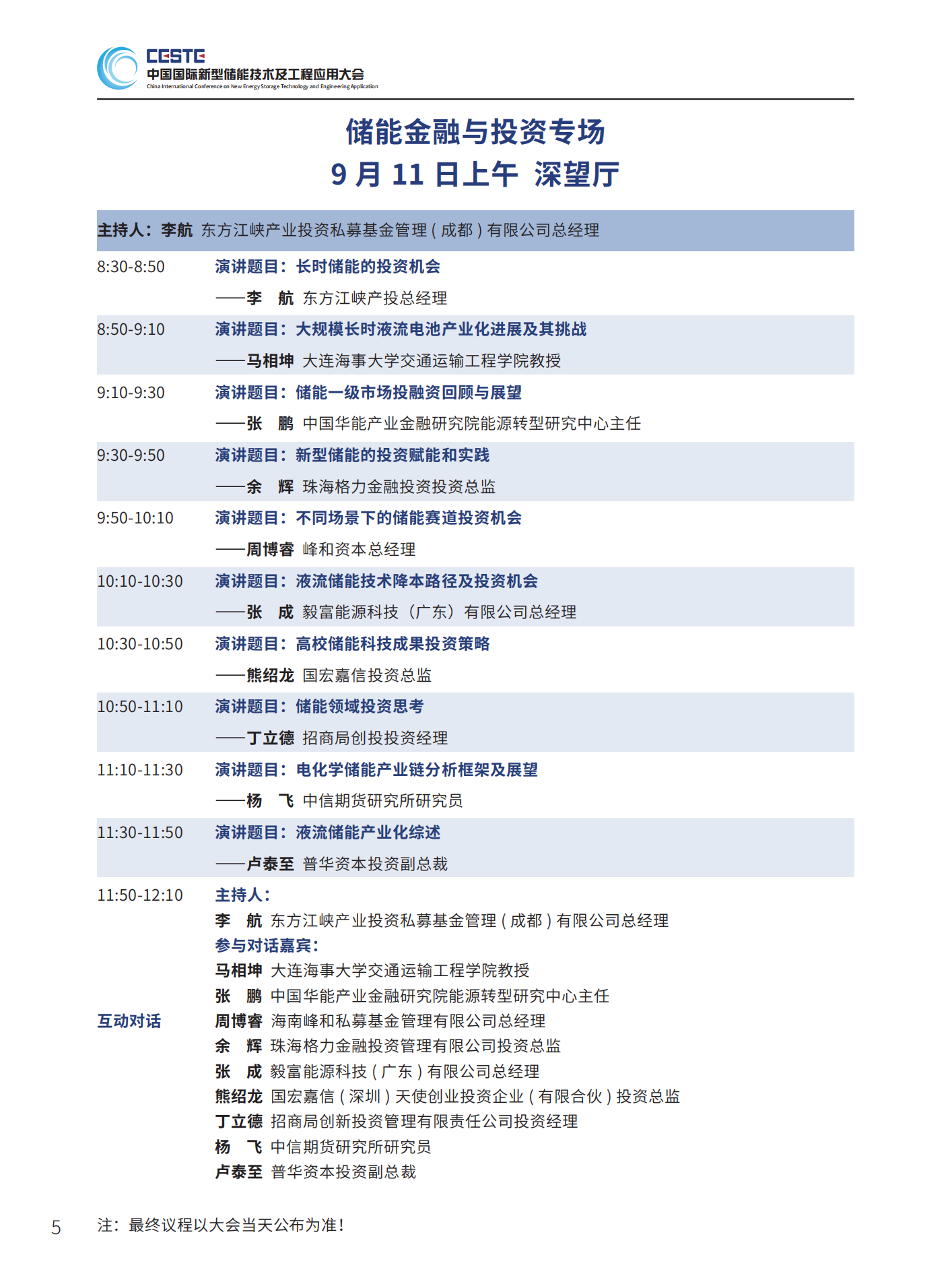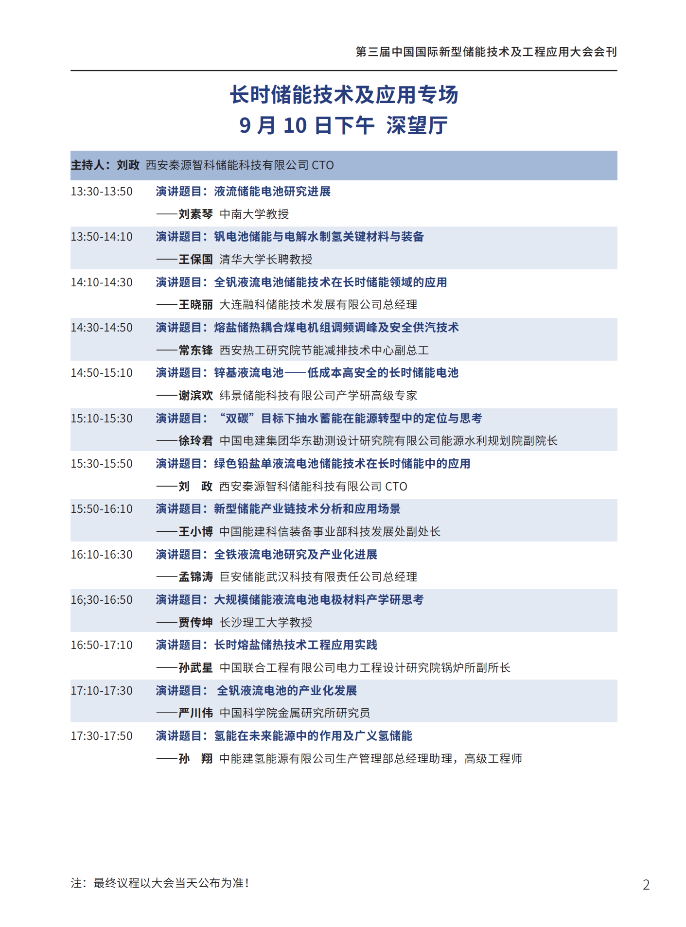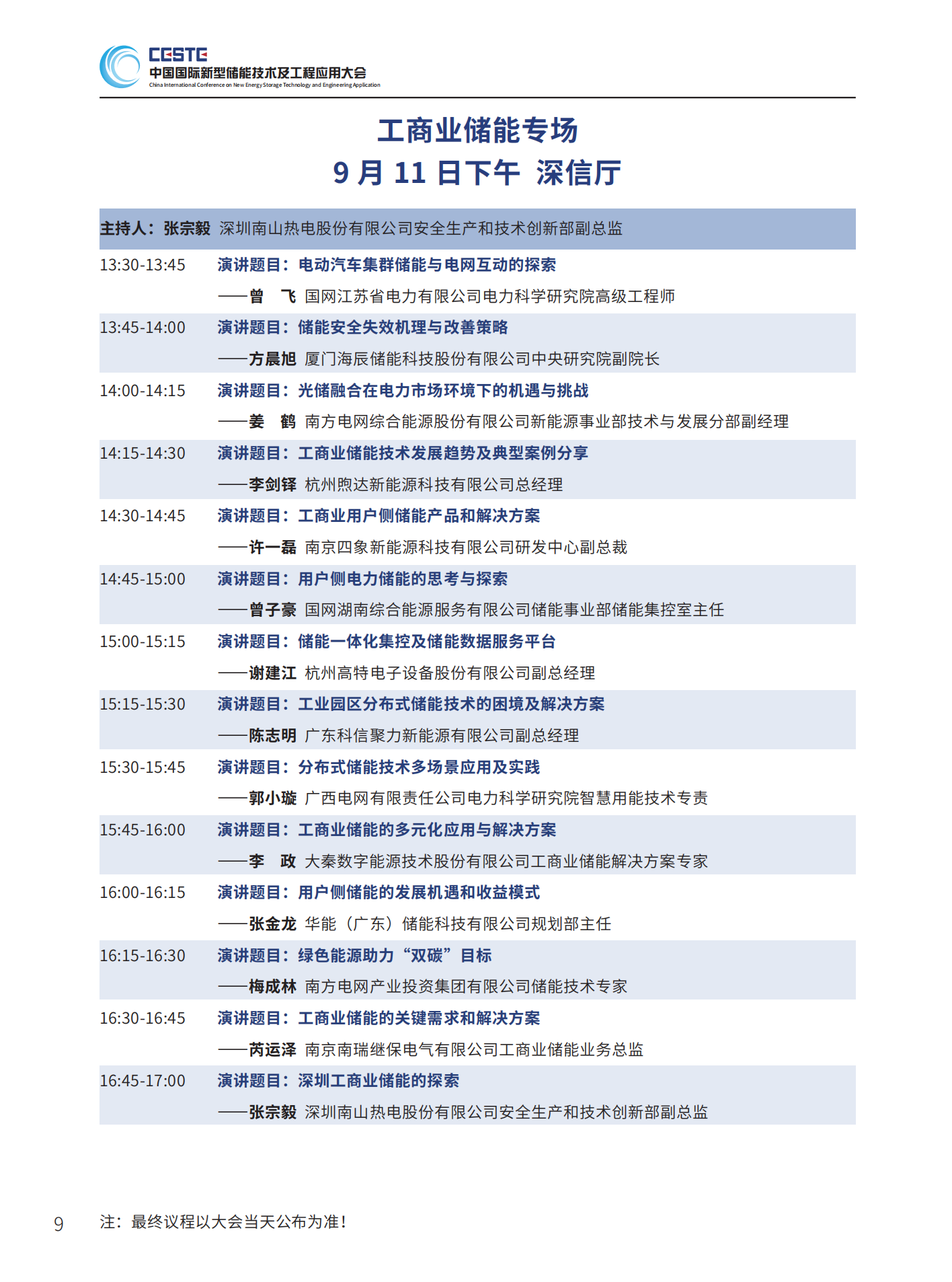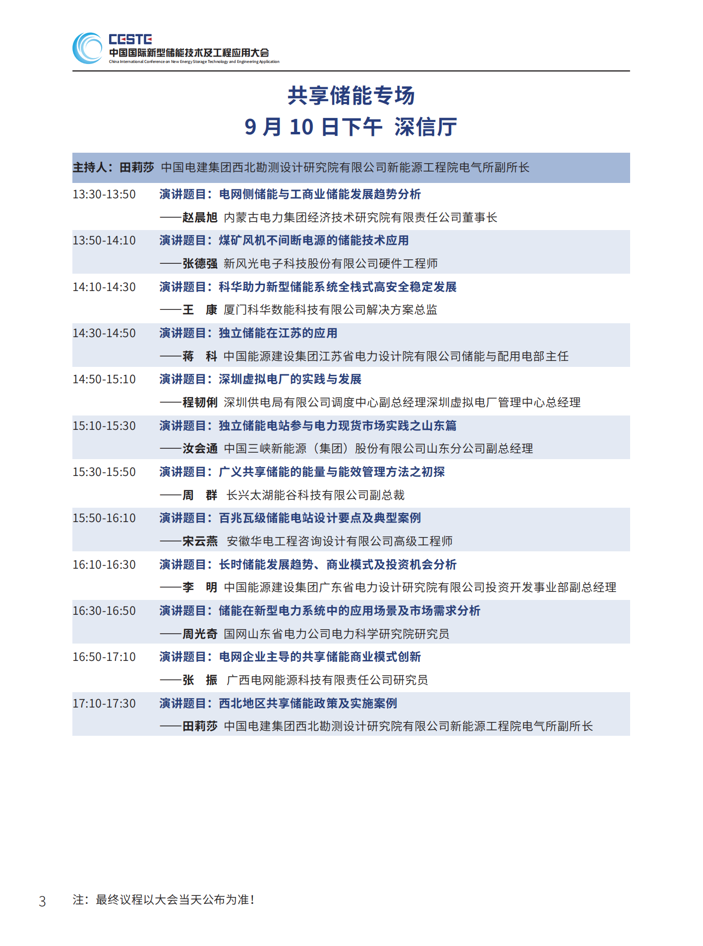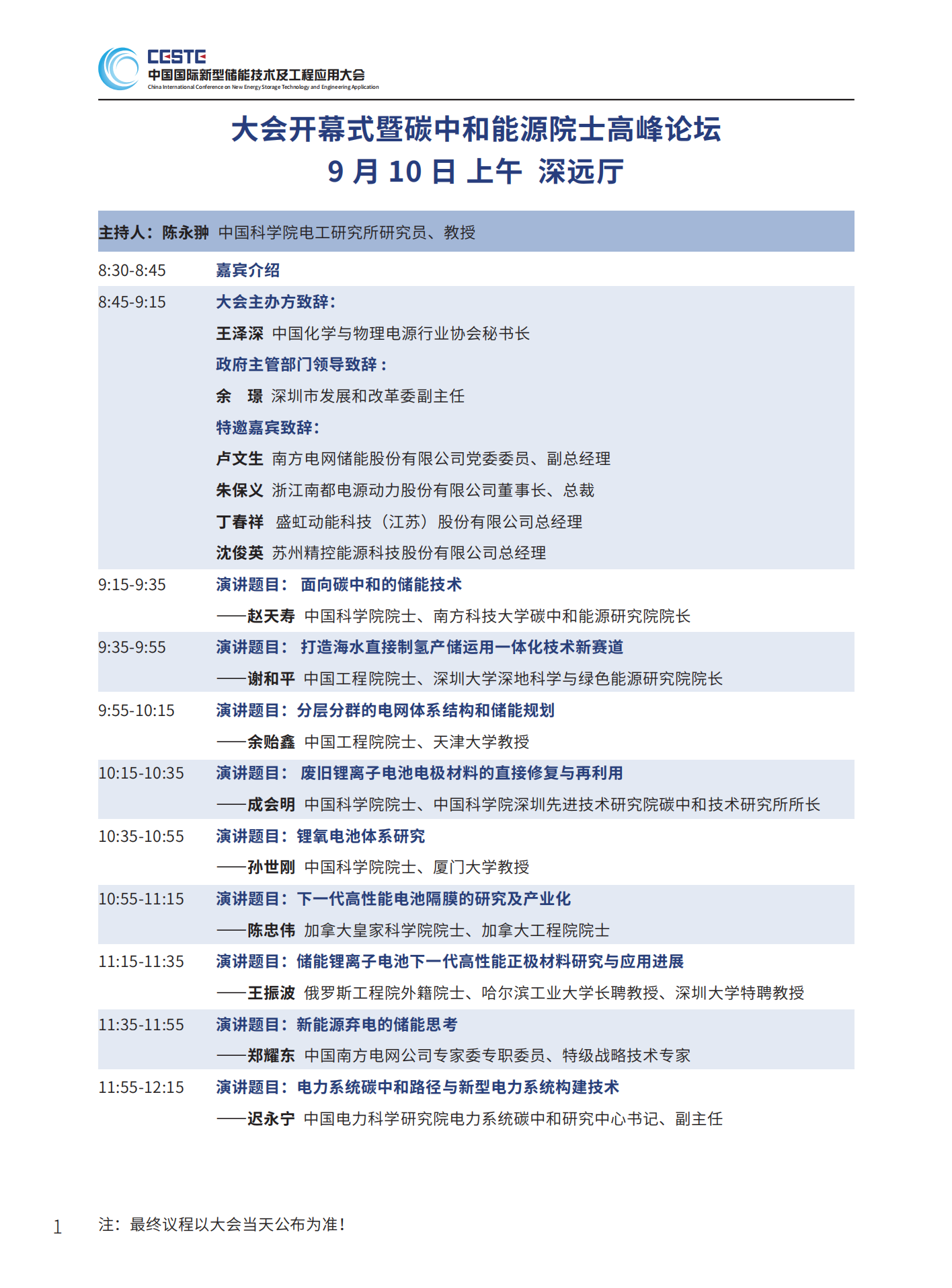 中國(guó)儲(chǔ)能網(wǎng)訊:由中國(guó)化學(xué)與物理電源行業(yè)協(xié)會(huì)決定聯(lián)合南方科技大學(xué)碳中和能源研究院、南方電網(wǎng)能源發(fā)展研究院等儲(chǔ)能領(lǐng)域的100余家單位共同支持的“碳中和能源院士高峰論壇暨第三屆中國(guó)國(guó)際新型儲(chǔ)能技術(shù)及工程應(yīng)用大會(huì)”將于2023年9月10-11日在深圳鵬瑞萊佛士酒店召開,以下為大會(huì)議程(最終議程以大會(huì)當(dāng)天公布為準(zhǔn))。