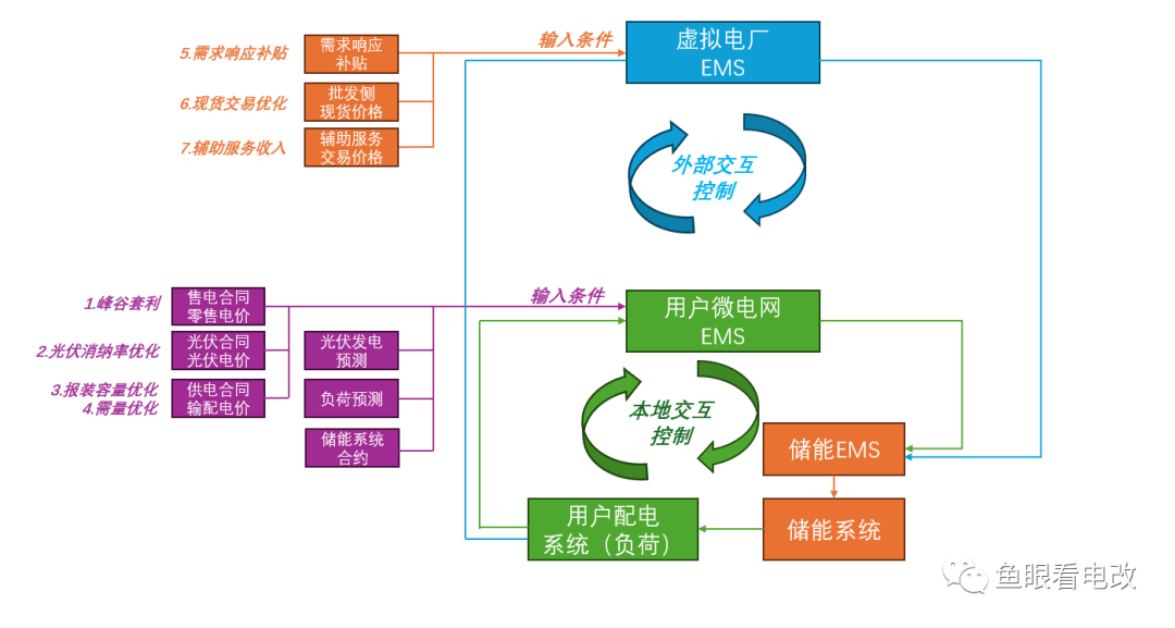 對儲能系統(tǒng)的EMS提出了更高的要求,不僅要實現(xiàn)本地的控制策略,還要疊加一層外部交互的策略,并且這兩層策略之間還需要耦合優(yōu)化,所以需要實現(xiàn)虛擬電廠EMS、用戶微電網EMS、儲能EMS的雙層耦合,儲能EMS自己無法解決外部性控制的需求。