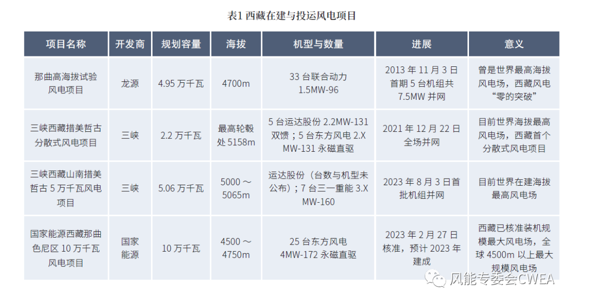 國(guó)家氣候中心的數(shù)據(jù)顯示,西藏100m與140m高度風(fēng)能資源技術(shù)可開(kāi)發(fā)量分別超過(guò)5.2億千瓦和6.3億千瓦。CWEA的數(shù)據(jù)顯示,2022年西藏風(fēng)電累計(jì)裝機(jī)容量?jī)H為3.1萬(wàn)千瓦,風(fēng)電發(fā)展空間巨大。據(jù)《風(fēng)能》統(tǒng)計(jì),截至2023年上半年,西藏進(jìn)入建設(shè)階段(包括建成投產(chǎn))的風(fēng)電項(xiàng)目共4個(gè)。其中在建項(xiàng)目2個(gè),均為規(guī)模化開(kāi)發(fā)風(fēng)電場(chǎng)。