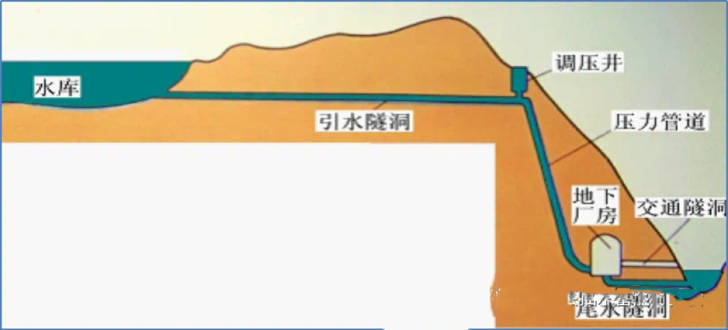 輸水系統(tǒng)一般由上水庫進(jìn)/出水口、引水隧洞、引水調(diào)壓室、高壓管道、尾水調(diào)壓室、尾水隧洞、下水庫進(jìn)/出水口等組成。