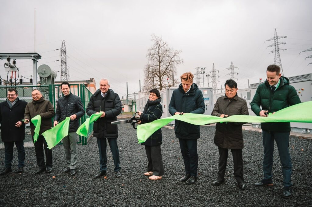 2023年比利時(shí)能源部長(zhǎng)Tinne Van der Straeten(中)在25MW/100MWh Ruien儲(chǔ)能項(xiàng)目開通儀式上剪彩,該項(xiàng)目通過CRM拍賣交付。