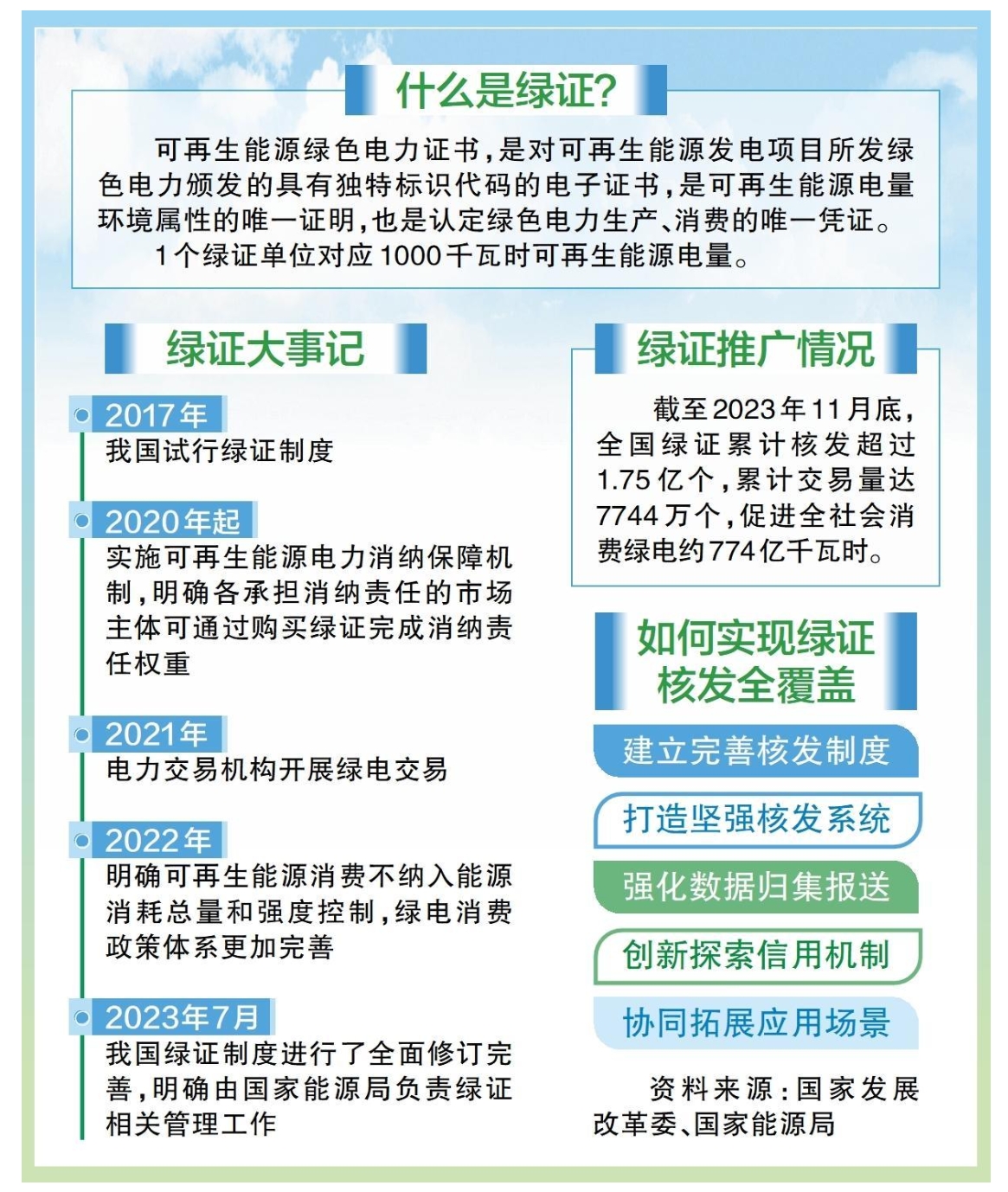 2017年我國試行綠證制度以來,綠證市場總體向好,初步推動(dòng)全社會(huì)形成了較好的綠色電力消費(fèi)意識(shí)。今年7月,國家發(fā)展改革委、財(cái)政部、國家能源局聯(lián)合印發(fā)《關(guān)于做好可再生能源綠色電力證書全覆蓋工作促進(jìn)可再生能源電力消費(fèi)的通知》(發(fā)改能源〔2023〕1044號),對我國綠證制度進(jìn)行了全面修訂完善,明確由國家能源局負(fù)責(zé)綠證相關(guān)管理工作,對全國風(fēng)電、太陽能發(fā)電、常規(guī)水電、生物質(zhì)發(fā)電、地?zé)崮馨l(fā)電、海洋能發(fā)電等已建檔立卡的可再生能源發(fā)電項(xiàng)目所生產(chǎn)的全部電量核發(fā)綠證,實(shí)現(xiàn)綠證核發(fā)全覆蓋,標(biāo)志著綠證核發(fā)進(jìn)入新階段。國家能源局首批核發(fā)綠證約1191萬個(gè),涉及項(xiàng)目1168個(gè)、發(fā)電企業(yè)755家。隨著我國可再生能源裝機(jī)容量和發(fā)電量不斷攀升,實(shí)現(xiàn)綠證核發(fā)全覆蓋后,我國將成為全球最大的綠證供應(yīng)市場。