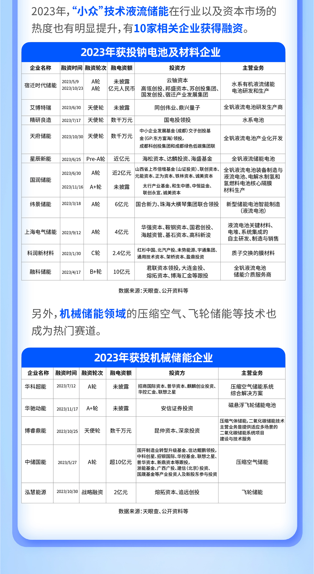 與此同時(shí),在政策與市場(chǎng)需求的雙重驅(qū)動(dòng)下,新型儲(chǔ)能也成為資本競(jìng)逐的方向。據(jù)不完全統(tǒng)計(jì),2023年有14家鈉電池及材料廠商完成融資,有6家固態(tài)電池企業(yè)拿到融資。