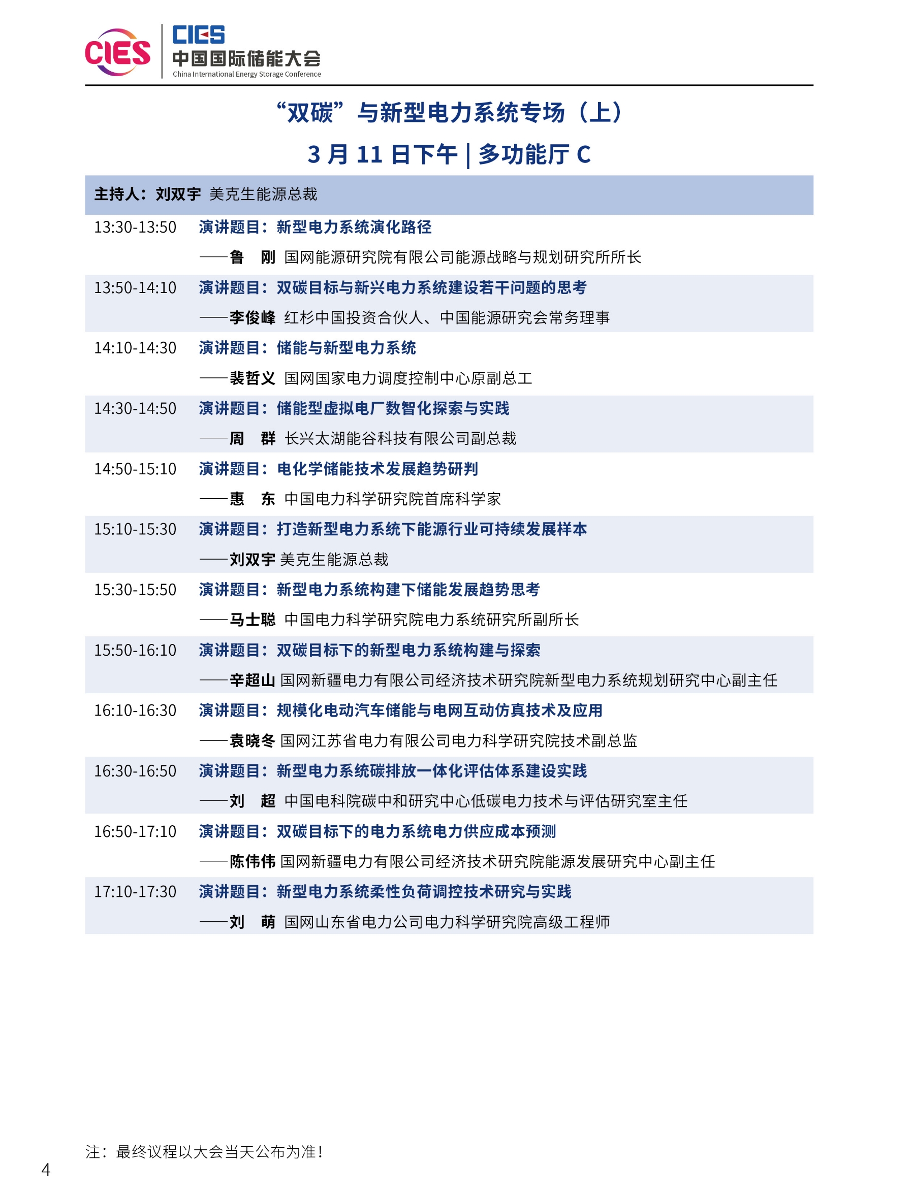 第十四屆中國國際儲能大會——“雙碳”與新型電力系統(tǒng)專場議程(上)