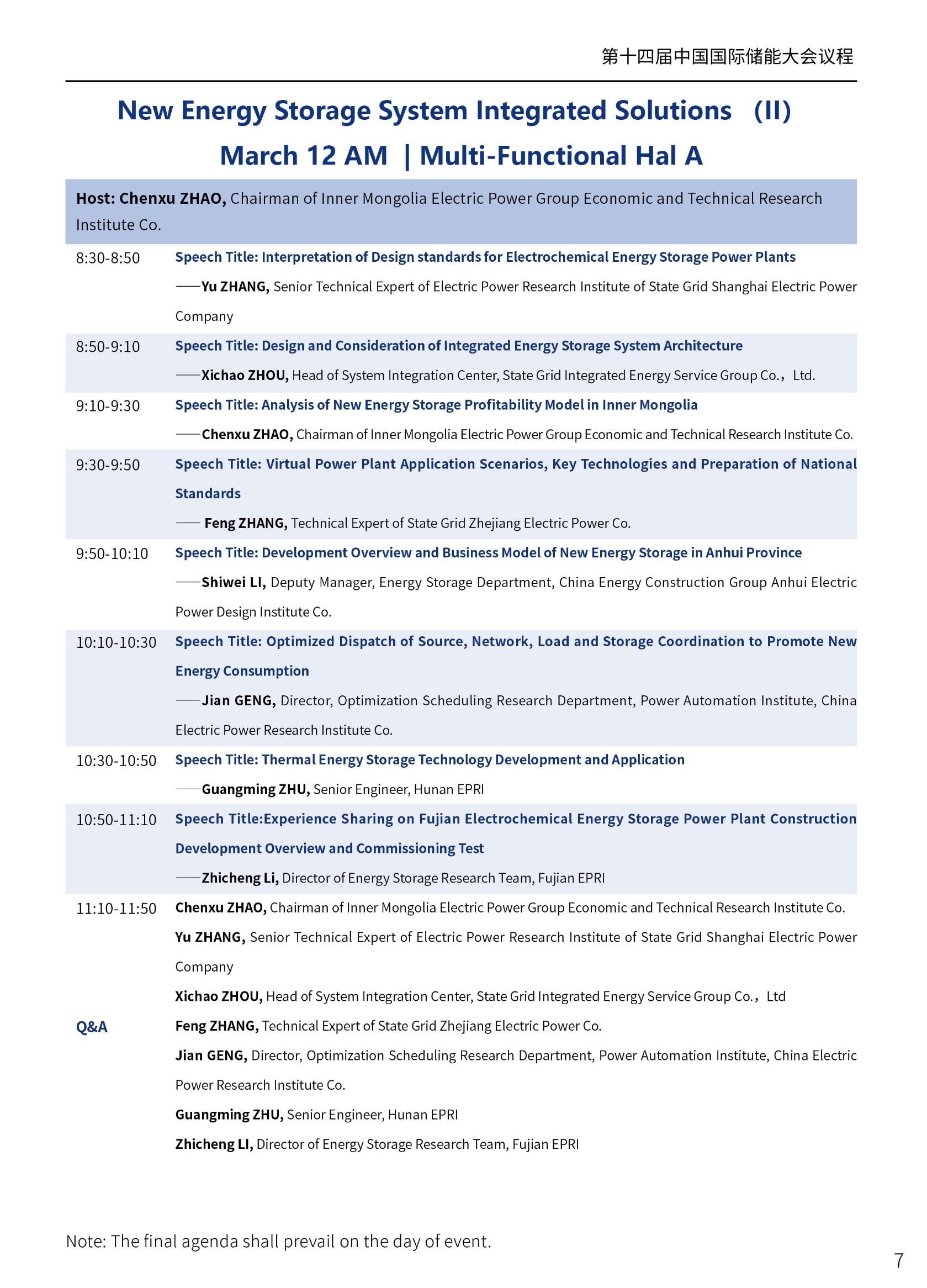 第十四屆中國國際儲能大會——新型儲能系統(tǒng)集成解決方案專場議程(中)