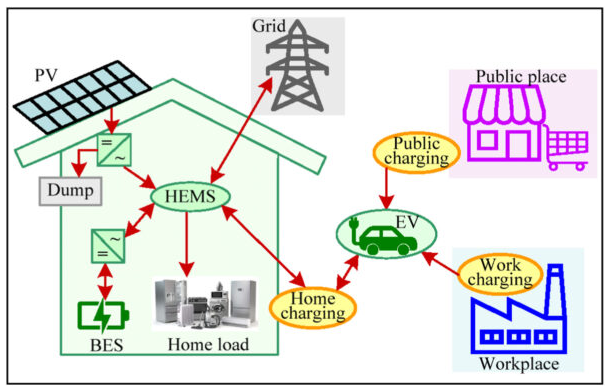 研究人員解釋說,“當(dāng)住宅太陽能發(fā)電量超過家庭用電和電動汽車充電需求的總和時,多余的電力為電池儲能系統(tǒng)充電,當(dāng)電池儲能系充滿時,多余的電力將返回電網(wǎng)。當(dāng)太陽能發(fā)電量小于家庭消費和電動汽車充電需求的總和時,家庭能源管理系統(tǒng)(HEMS)將以三種方式中的一種運作,這種方式基于分時電價的三個價格周期?!?