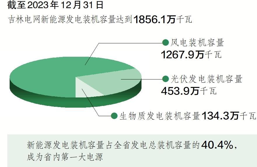 中國儲(chǔ)能網(wǎng)訊:截至2023年12月31日,吉林省新能源發(fā)電裝機(jī)容量達(dá)到1856.1萬千瓦,其中風(fēng)電裝機(jī)容量1267.9萬千瓦、光伏發(fā)電裝機(jī)容量453.9萬千瓦、生物質(zhì)發(fā)電裝機(jī)容量134.3萬千瓦,新能源發(fā)電裝機(jī)容量占全省發(fā)電總裝機(jī)容量的40.4%,超過煤電成為省內(nèi)第一大電源,新能源利用率連續(xù)5年保持95%以上。2023年,吉林新能源電量消納同比增長39.1%,比上一年增加53億千瓦時(shí)。