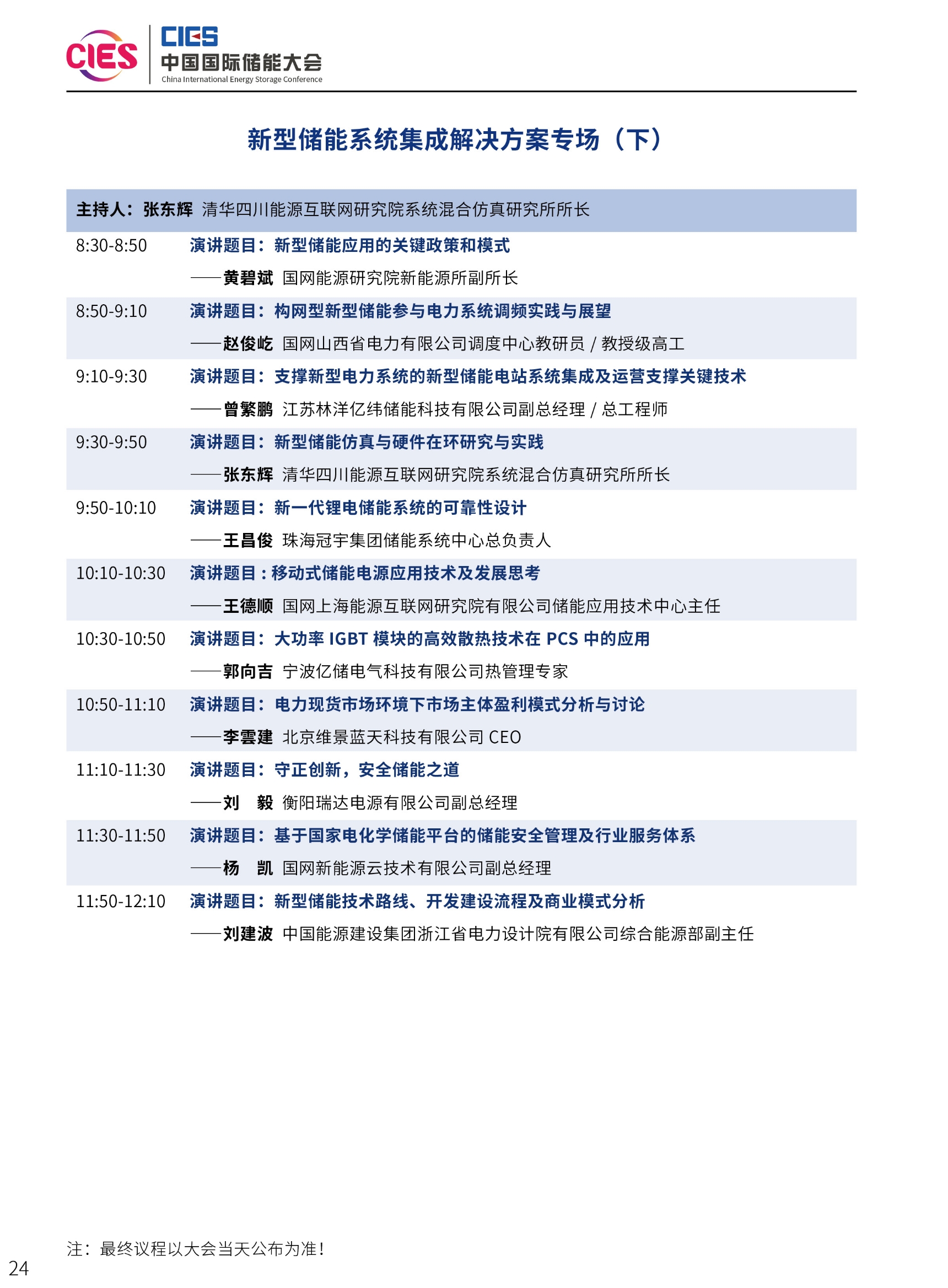 第十四屆中國(guó)國(guó)際儲(chǔ)能大會(huì)——新型儲(chǔ)能系統(tǒng)集成解決方案專場(chǎng) (下)議程發(fā)布