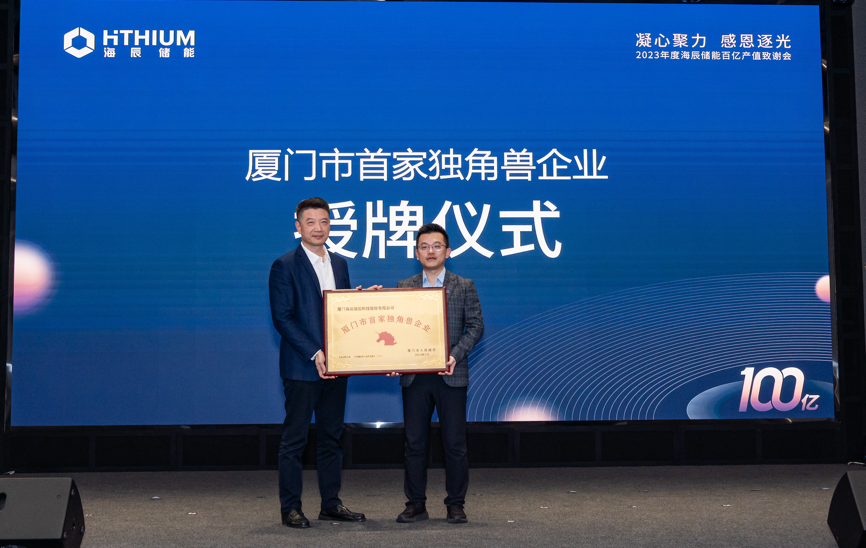 中國儲能網(wǎng)訊:1月17日,以“凝心聚力感恩逐光”為主題的“2023年度海辰儲能百億產(chǎn)值致謝會”在海辰儲能廈門總部國際會議廳舉行。廈門市政府向海辰儲能授牌“廈門市首家獨角獸企業(yè)”,廈門火炬高新區(qū)管委會及同安區(qū)區(qū)委區(qū)政府分別向企業(yè)頒發(fā)“百億規(guī)模企業(yè)”和“同安區(qū)首家百億產(chǎn)值企業(yè)”牌匾,對企業(yè)高質(zhì)量快速發(fā)展給予高度肯定。