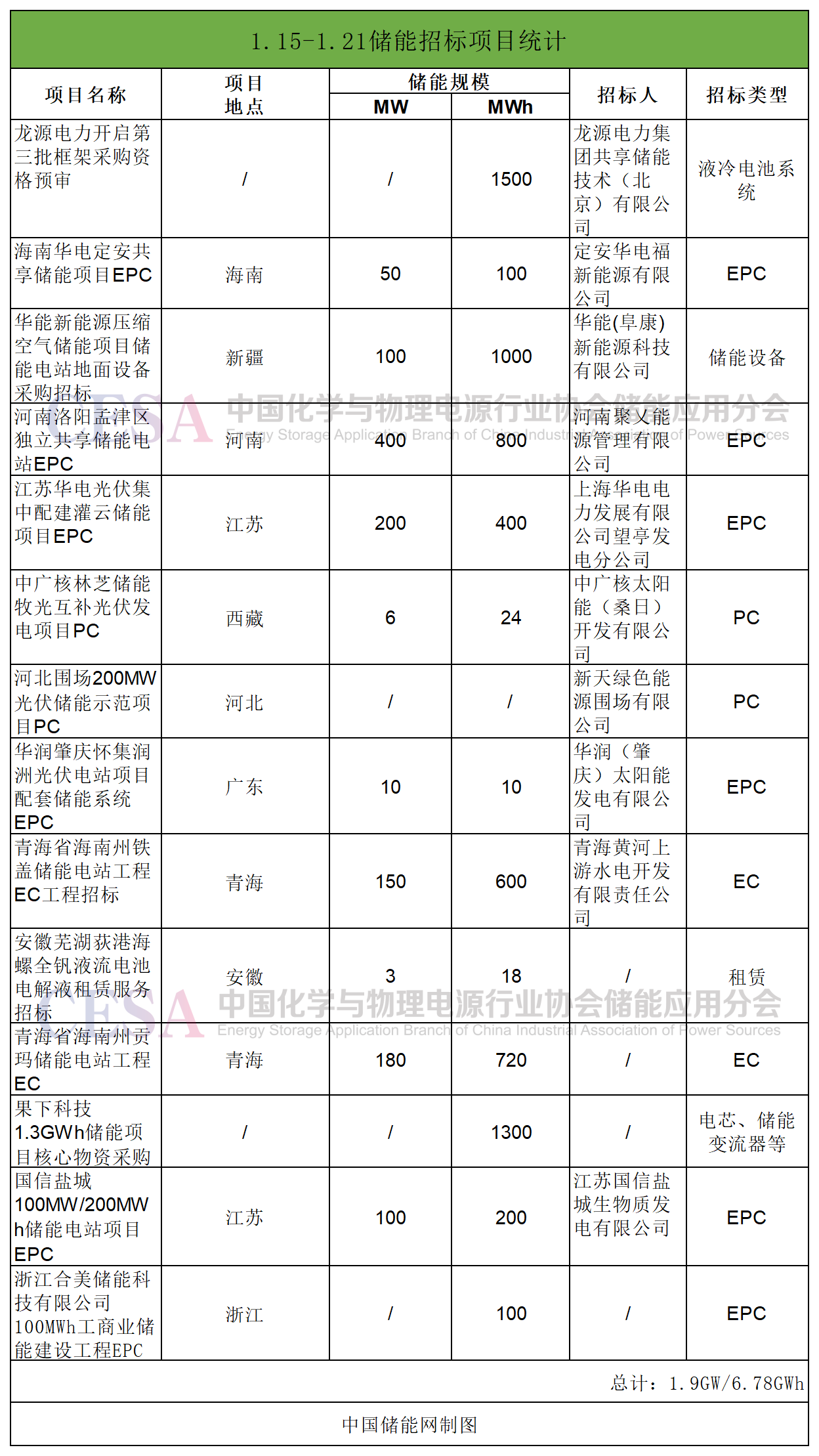 中國儲能網(wǎng)訊:2024年1月第三周儲能招標市場依舊火爆,據(jù)中國儲能網(wǎng)不完全統(tǒng)計,本周共計1.9GW/6.78GWh儲能項目開啟招標,主要以EPC為主,其中包括4個GWh級別的招標項目,分別是: