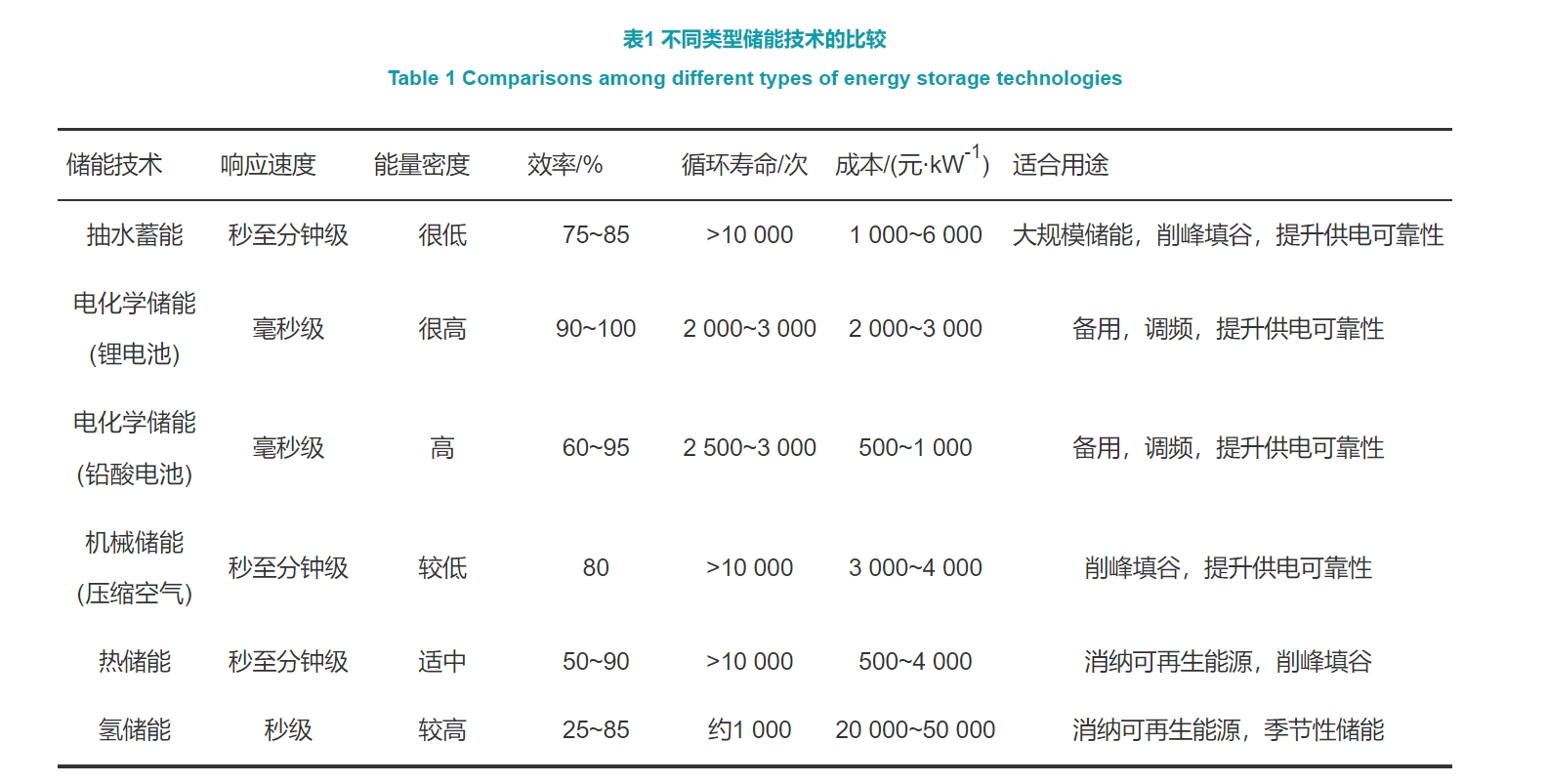 不同類型的儲(chǔ)能在響應(yīng)速度、能量密度、效率、壽命、經(jīng)濟(jì)成本、潛在應(yīng)用上有所差異,歸納如表1。儲(chǔ)能依靠其物理特性,在電力系統(tǒng)中具備諸多潛在價(jià)值,可在市場(chǎng)上提供相應(yīng)的標(biāo)的。