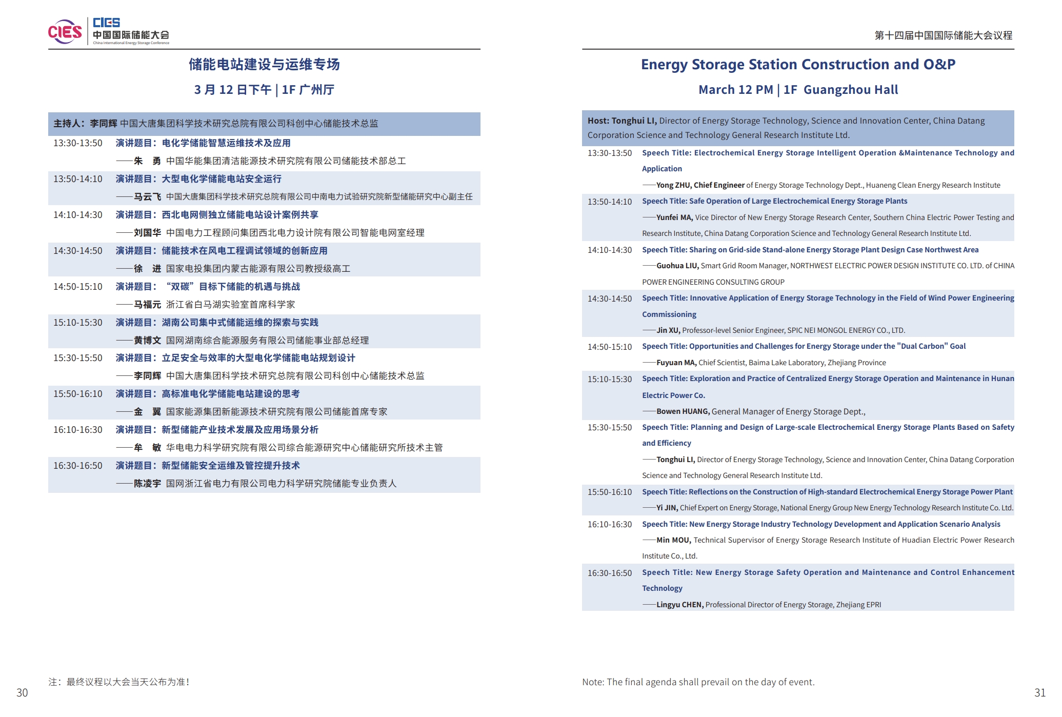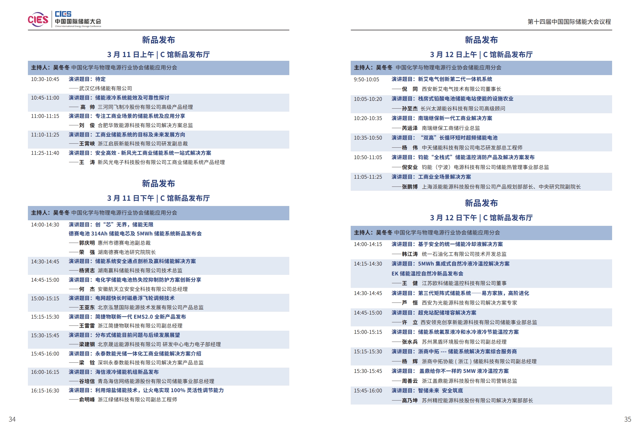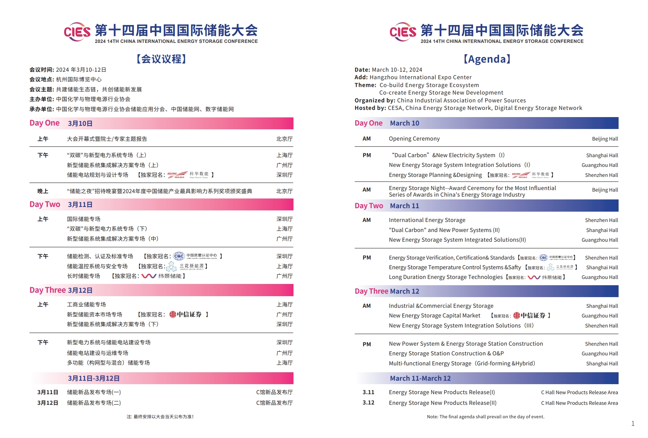 本次大會將安排有大會開幕式暨院士/專家主題報告、“雙碳”與新型電力系統(tǒng)(上、下)、新型儲能系統(tǒng)集成解決方案(上、中、下)、儲能電站規(guī)劃與設(shè)計、國際儲能、儲能檢測認(rèn)證及標(biāo)準(zhǔn)、儲能溫控系統(tǒng)與安全、長時儲能技術(shù)、工商業(yè)儲能、新型儲能資本專場、儲能電站建設(shè)與運維、多功能儲能(構(gòu)網(wǎng)型與混合)、新型電力系統(tǒng)與儲能電站建設(shè)、儲能新品發(fā)布等17個專場論壇。