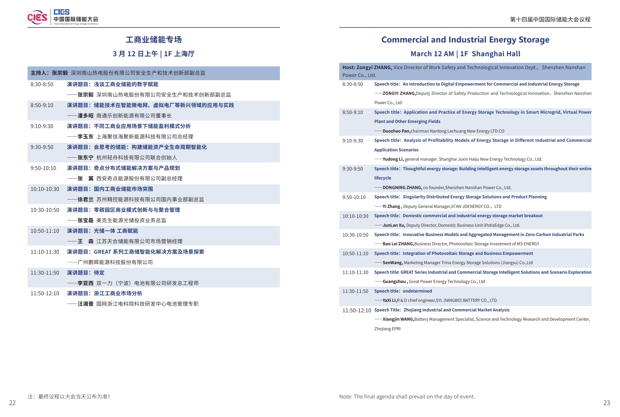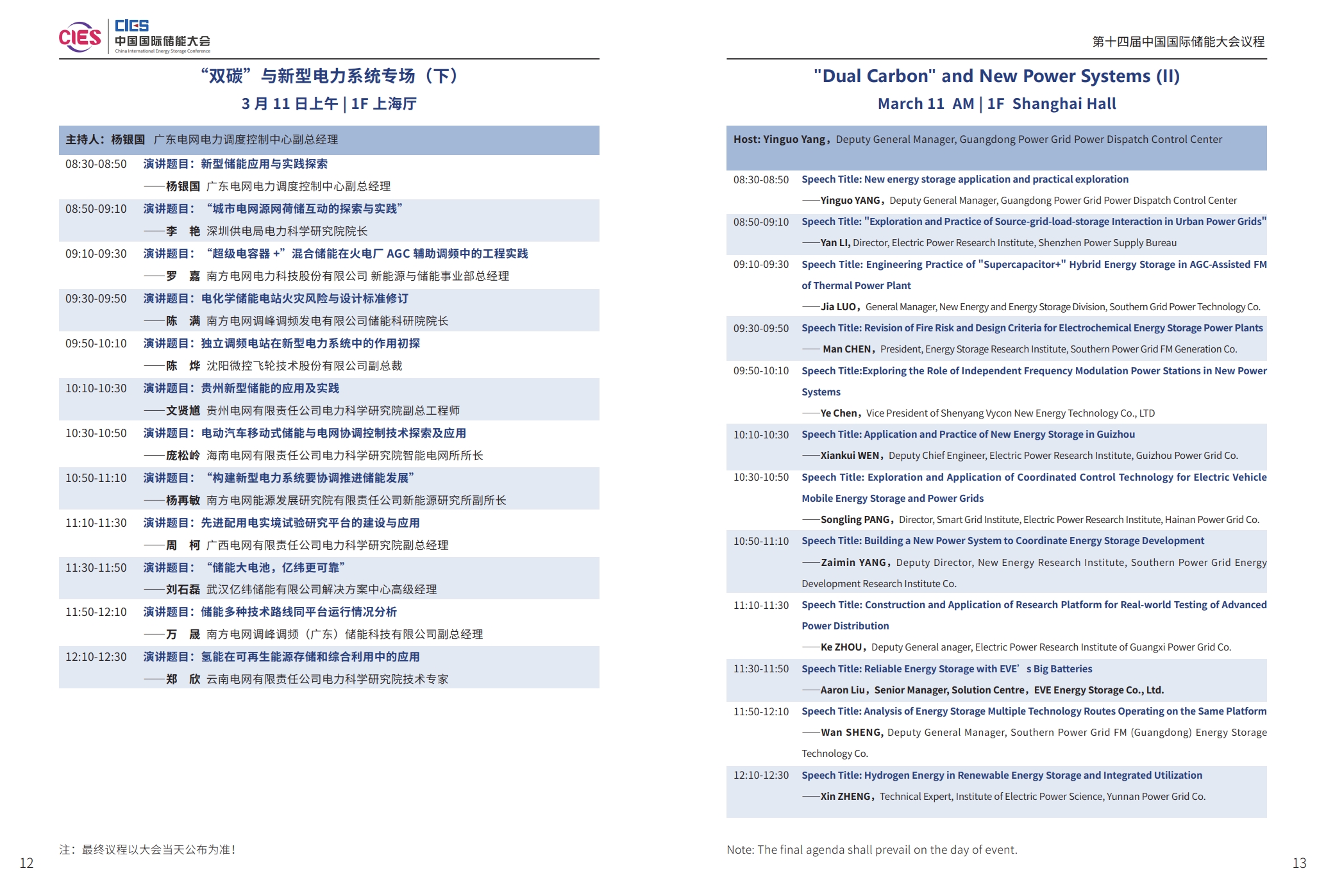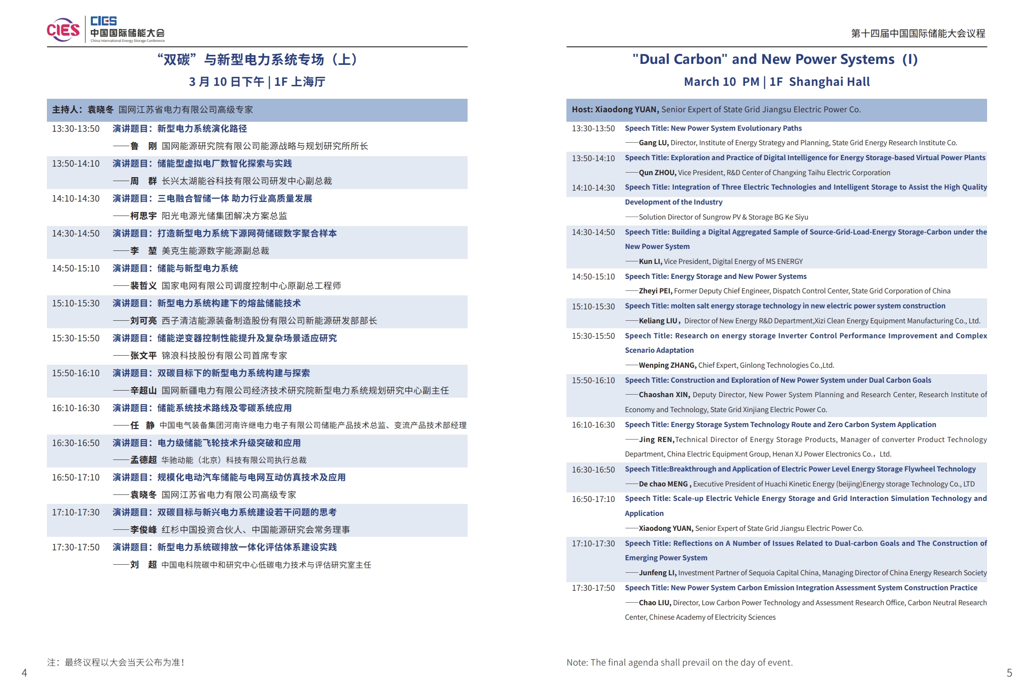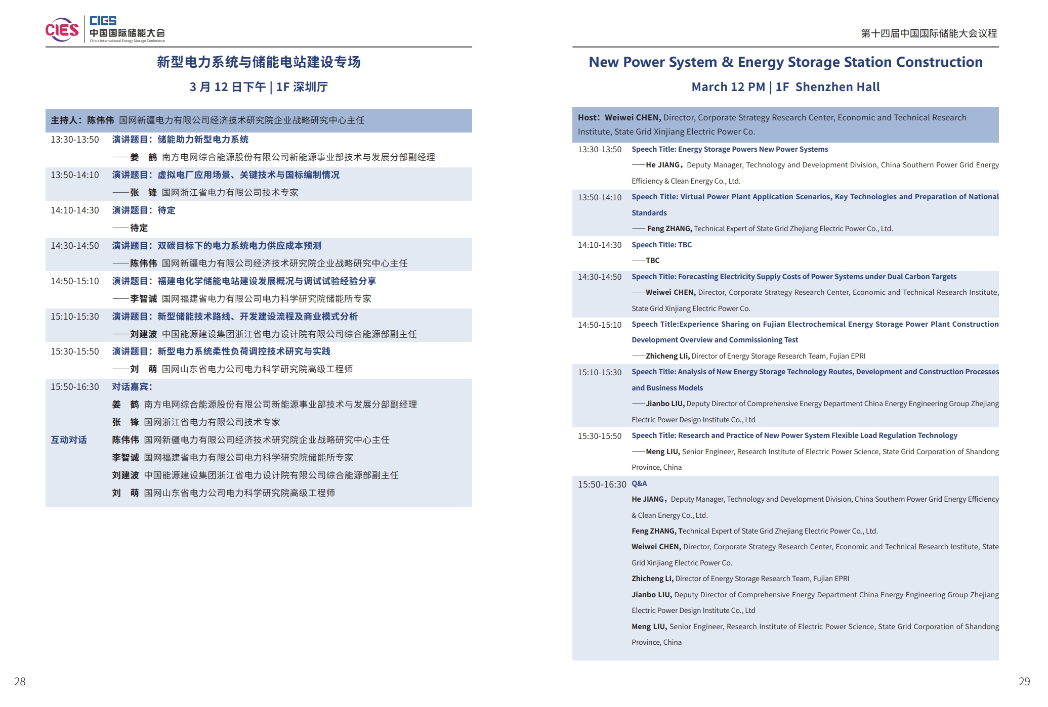 本次大會將安排有大會開幕式暨院士/專家主題報告、“雙碳”與新型電力系統(tǒng)(上、下)、新型儲能系統(tǒng)集成解決方案(上、中、下)、儲能電站規(guī)劃與設(shè)計、國際儲能、儲能檢測認(rèn)證及標(biāo)準(zhǔn)、儲能溫控系統(tǒng)與安全、長時儲能技術(shù)、工商業(yè)儲能、新型儲能資本專場、儲能電站建設(shè)與運維、多功能儲能(構(gòu)網(wǎng)型與混合)、新型電力系統(tǒng)與儲能電站建設(shè)、儲能新品發(fā)布等17個專場論壇。