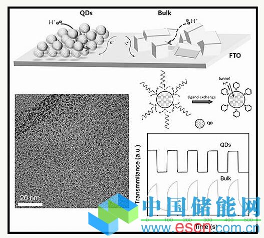 量子點(diǎn)表面包覆的長鏈脂肪胺替換為吡啶分子后展示出優(yōu)秀的電化學(xué)性能。蘇州納米所供圖