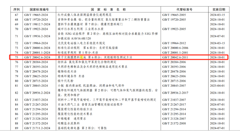 GB/T 20042.6-2024《質(zhì)子交換膜燃料電池 第6部分:雙極板特性測試方法》2024年10月1日實(shí)施