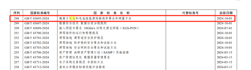 GB/T 43695-2024《鋰離子電池和電池組能源轉(zhuǎn)換效率要求和測量方法》2024年10月1日實(shí)施