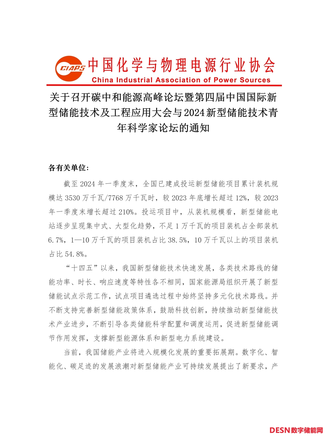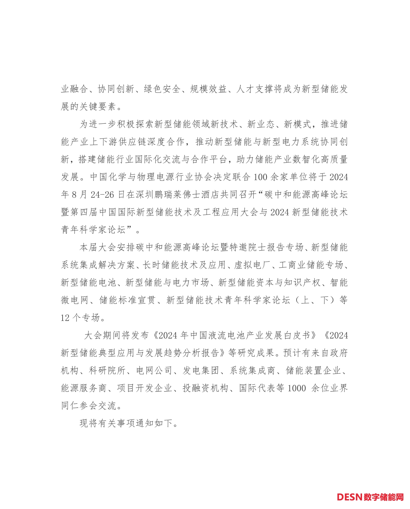 為進(jìn)一步積極探索新型儲能領(lǐng)域新技術(shù)、新業(yè)態(tài)、新模式,推進(jìn)儲能產(chǎn)業(yè)上下游供應(yīng)鏈深度合作,推動新型儲能與新型電力系統(tǒng)協(xié)同創(chuàng)新,搭建儲能行業(yè)國際化交流與合作平臺,助力儲能產(chǎn)業(yè)數(shù)智化高質(zhì)量發(fā)展。中國化學(xué)與物理電源行業(yè)協(xié)會決定聯(lián)合100余家單位將于2024年8月24-26日在深圳鵬瑞萊佛士酒店共同召開“碳中和能源高峰論壇暨第四屆中國國際新型儲能技術(shù)及工程應(yīng)用大會與2024新型儲能技術(shù)青年科學(xué)家論壇”。