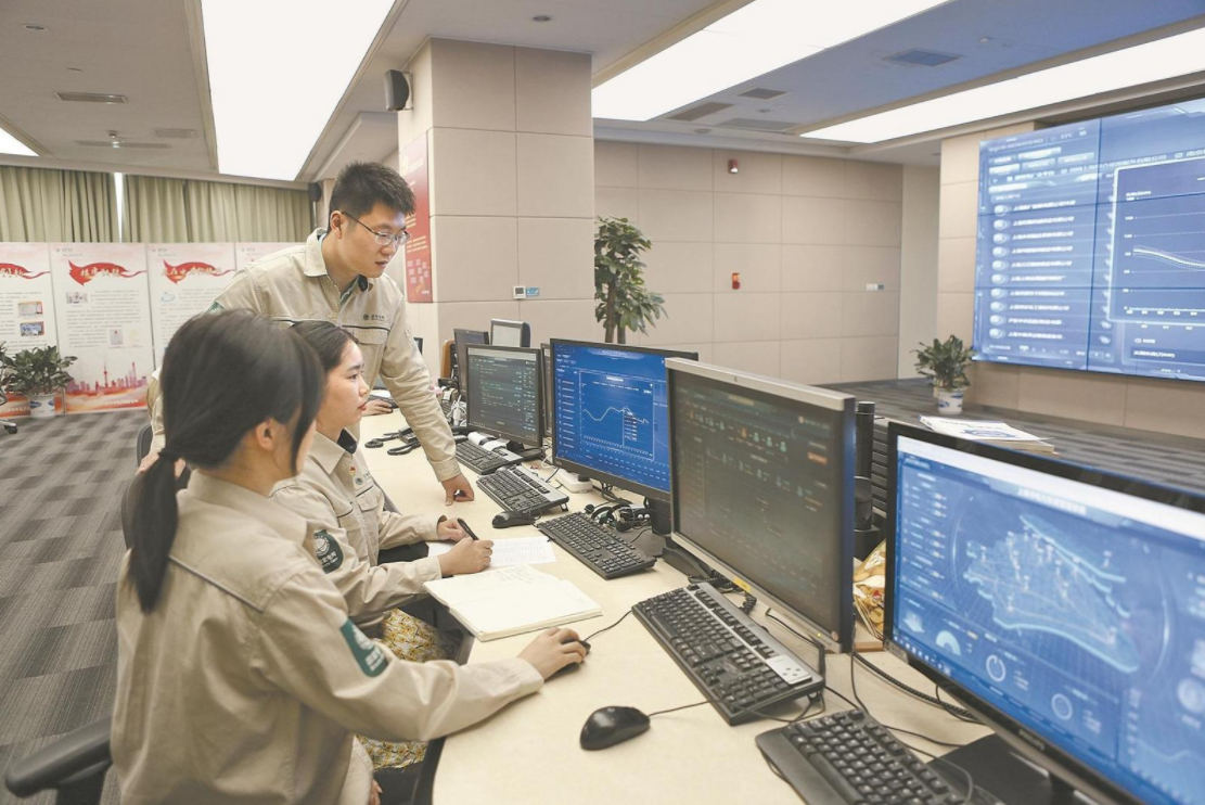 7月18日,上海市電力負(fù)荷管理中心員工正在查看虛擬電廠客戶負(fù)荷。潘書婷 攝