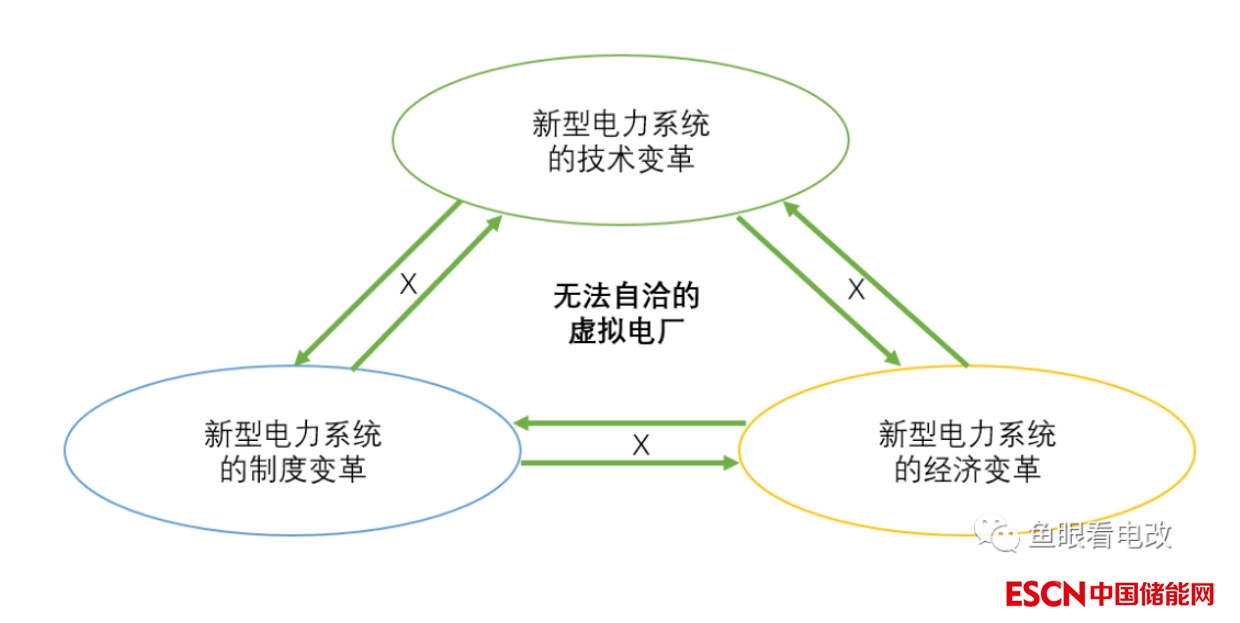 只有在技術(shù)層面(新能源+數(shù)字化)、運(yùn)營(yíng)制度層面(從簡(jiǎn)單設(shè)備運(yùn)維到綜合能源服務(wù)管理)、經(jīng)濟(jì)制度層面(建立各類實(shí)體和虛擬產(chǎn)權(quán)、各類資產(chǎn)價(jià)格、各類資產(chǎn)的多層級(jí)交易機(jī)制),形成正向閉環(huán)的自洽,而不是技術(shù)與制度、經(jīng)濟(jì)的互鎖,虛擬電廠作為這個(gè)復(fù)雜系統(tǒng)的上層應(yīng)用才會(huì)成為可能。