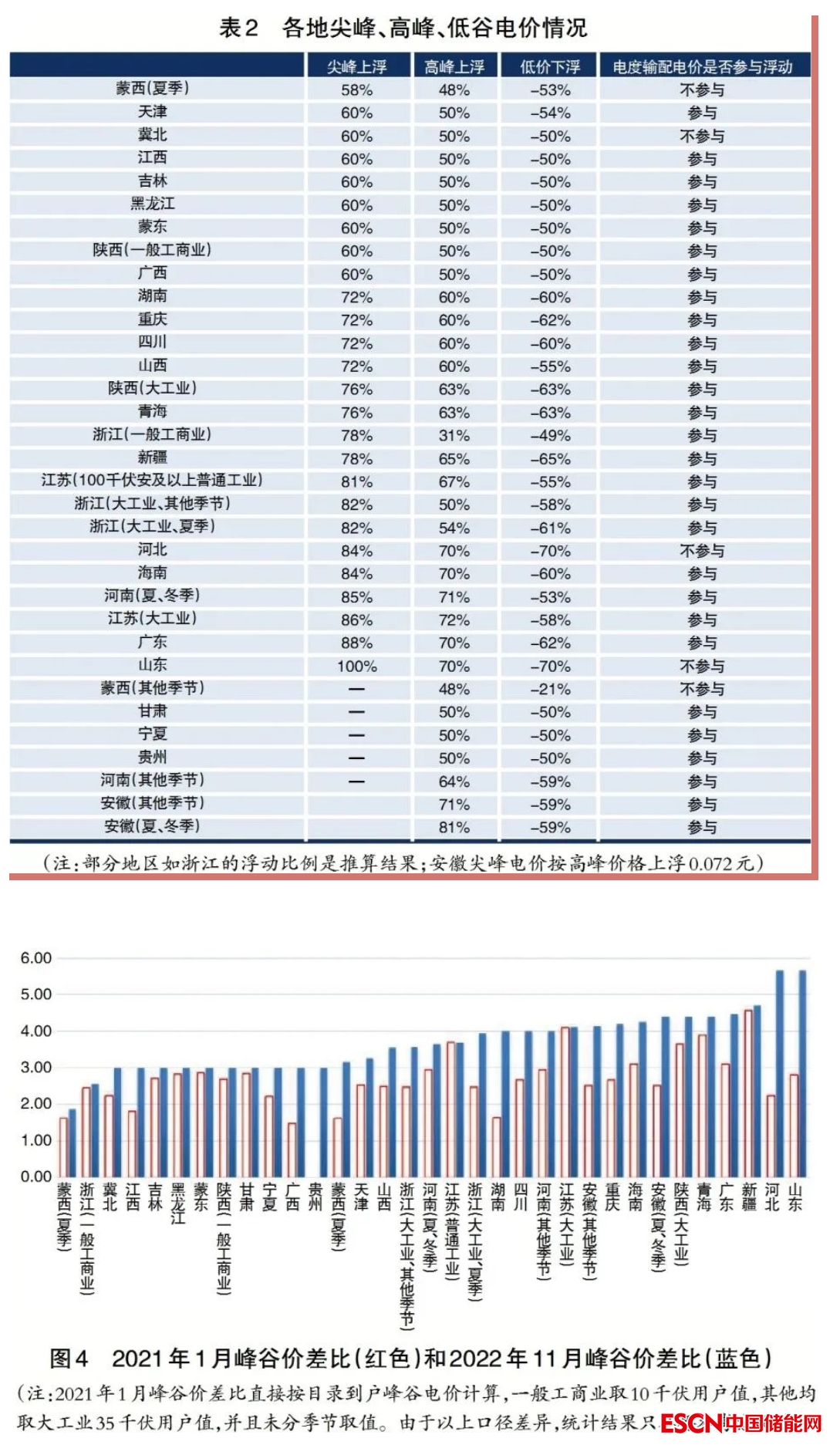 高峰電價與低谷電價的比值普遍超過3倍,近一半統(tǒng)計結(jié)果接近或超過4倍,其中山東與河北南網(wǎng)的峰谷價差比更達到5.67倍,明顯超過其他地區(qū)。與2021年1月時各地峰谷價差相比,除江蘇未調(diào)整高峰、低谷電價外,其他地區(qū)峰谷價差比都有所加大。