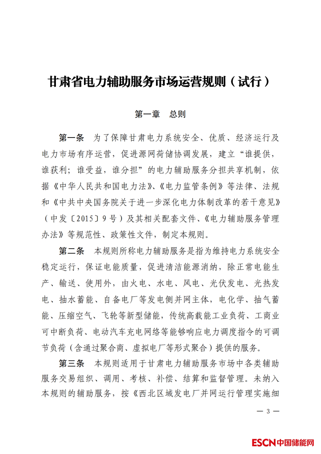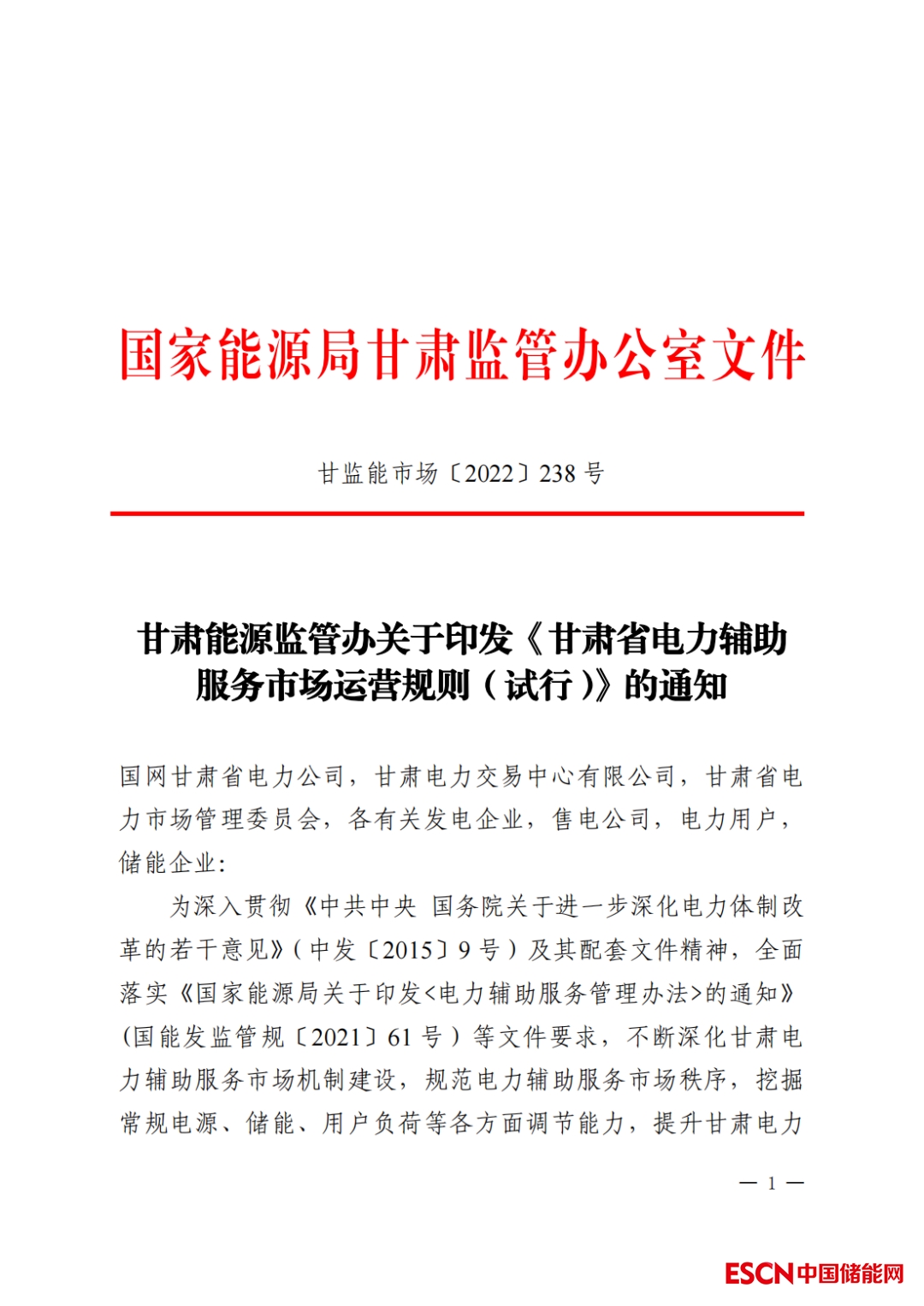 中國儲能網(wǎng)訊:1月5日,國家能源局甘肅能源監(jiān)管辦正式發(fā)布《甘肅省電力輔助服務(wù)市場運營規(guī)則(試行)》的通知,甘肅省成為全國首個為儲能開放調(diào)峰容量市場的地區(qū)。