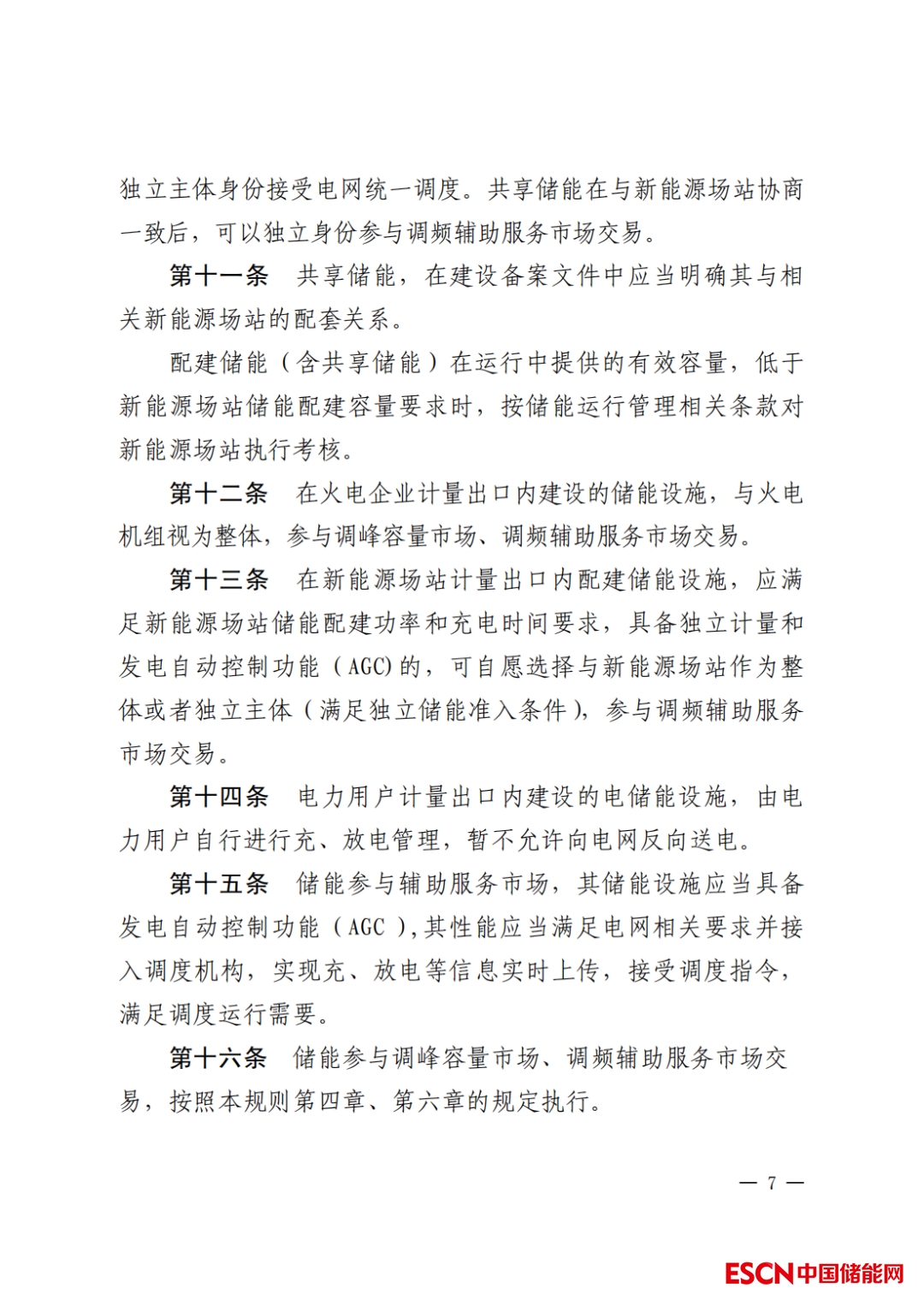 3.在火電企業(yè)計量出口內(nèi)建設(shè)的儲能設(shè)施,與火電機組視為整體,參與調(diào)峰容量市場、調(diào)頻輔助服務(wù)市場交易。