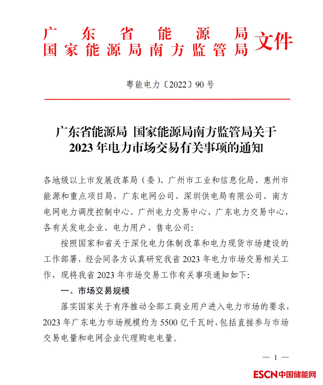中國(guó)儲(chǔ)能網(wǎng)訊:近日,廣東省能源局、國(guó)家能源局南方監(jiān)管局下發(fā)關(guān)于2023年電力市場(chǎng)交易有關(guān)事項(xiàng)的通知(粵能電力〔2022〕90 號(hào)),通知表示,落實(shí)國(guó)家關(guān)于有序推動(dòng)全部工商業(yè)用戶進(jìn)入電力市場(chǎng)的要求,2023年廣東電力市場(chǎng)規(guī)模約為5500億千瓦時(shí)。同時(shí)指出,適時(shí)推動(dòng)儲(chǔ)能等新興市場(chǎng)主體試點(diǎn)參與電能量市場(chǎng)交易。