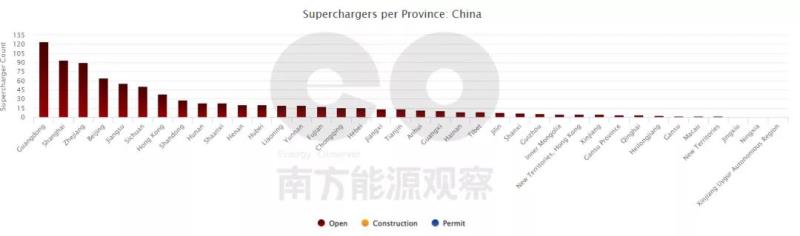 特斯拉超級充電樁在國內(nèi)各省分布情況