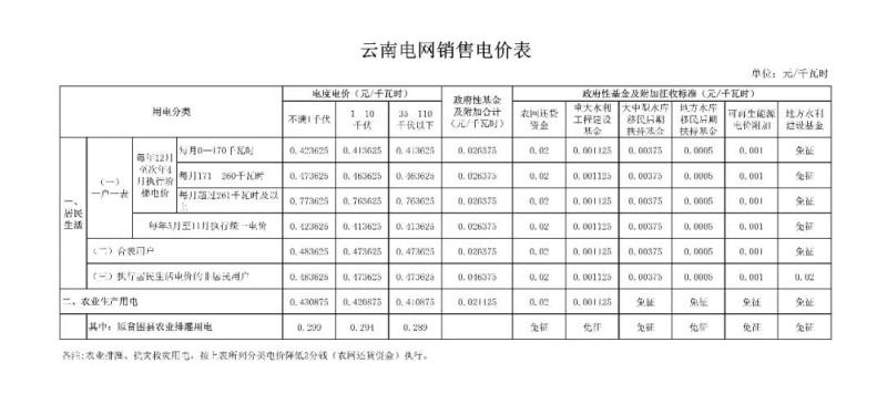 附件:云南電網(wǎng)銷售電價表