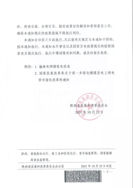 陜西:關于調(diào)整榆林電網(wǎng)目錄銷售電價有關事項的通知