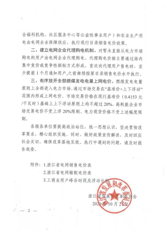 浙江:關(guān)于調(diào)整我省目錄銷售電價(jià)有關(guān)事項(xiàng)的通知
