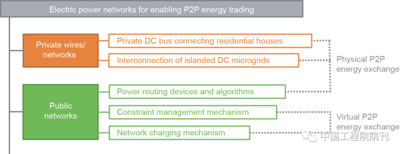 電力網(wǎng)絡用于傳輸用戶在端對端能源交易中所達成的電量。相關解決方案可以分為兩類,如圖9所示。