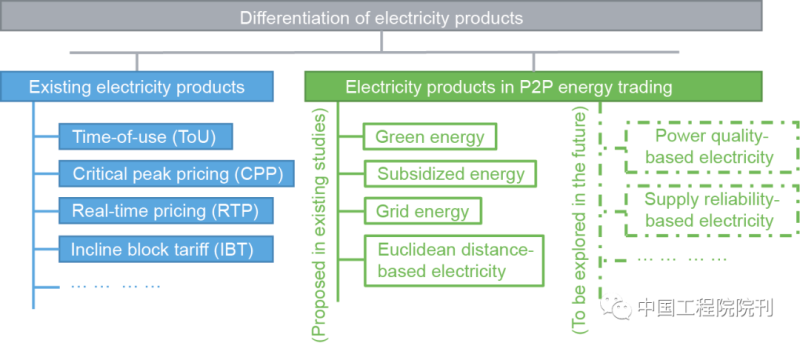 電力產品的異質化是端對端能源交易很有潛力的一個發(fā)展方向。現(xiàn)有研究和實踐主要從時間、距離和類型(如綠色電力、補貼電力和電網(wǎng)電力等不同類型)三方面對電力產品進行區(qū)別。未來可以對電力產品進行進一步的異質化,如基于電能質量的異質化、基于供電可靠性的異質化等。