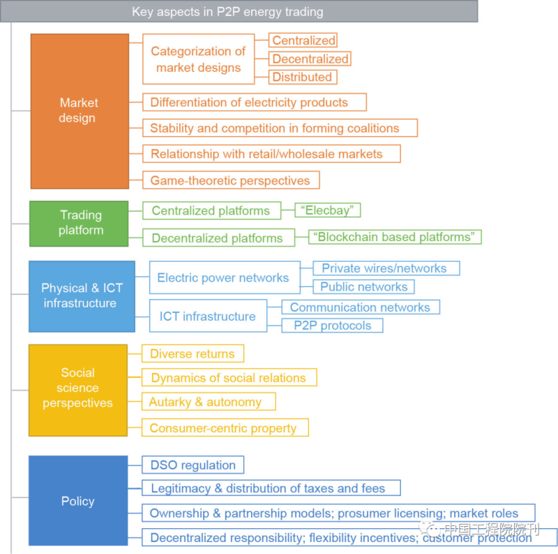 本文總結并討論了端對端能源交易的5個主要方面,包括市場機制設計、交易平臺、物理和信息通信基礎設施、社會科學視角以及政策法規(guī)。針對每個方面,對現(xiàn)有相關研究和實踐均進行了批判性分析并就未來的發(fā)展方向做出了展望。研究結果顯示盡管已有很多研究從不同角度對端對端能源交易做了許多工作,但仍有許多問題有待進一步研究和解決,因此端對端能源交易在未來將是一個不斷上升和發(fā)展的領域,在學術界和工業(yè)界都會有許多機會。關于端對端能源交易全球發(fā)展圖景和主要研究方面的結論詳述如下。