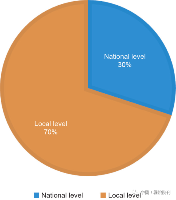 如圖4所示,美國和歐洲國家的端對端能源交易的相關實踐最為活躍,其中美國和德國擁有世界上最多數(shù)量的端對端能源交易工程項目。圖5顯示70%的工程項目聚焦于本地層級,具體包括樓宇、社區(qū)、微網(wǎng)和配電網(wǎng)等。另外30%的工程項目聚焦于全國層級,具體解決跨不同大區(qū)或電力批發(fā)市場中發(fā)電機組和用戶間的端對端能源交易問題。