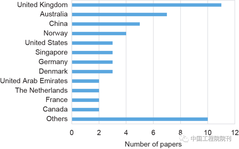 圖2 端對端能源交易相關期刊論文統(tǒng)計(按國家)