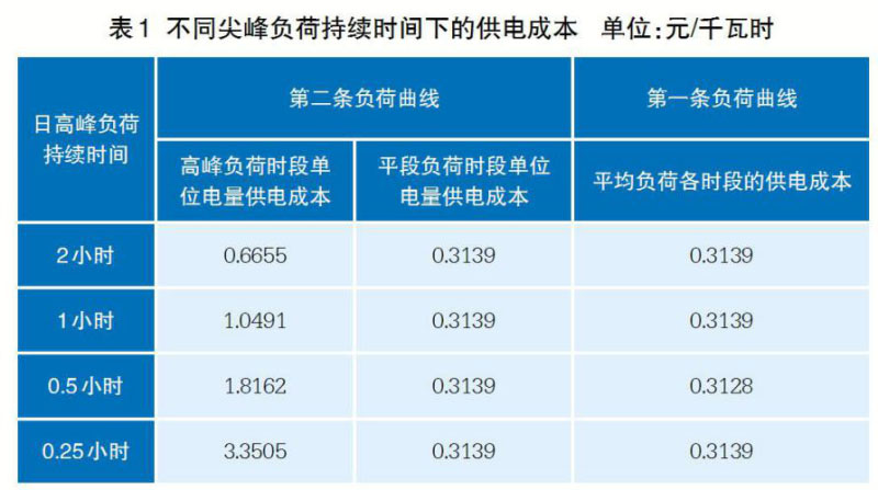 不同負(fù)荷曲線下的供電成本測算
