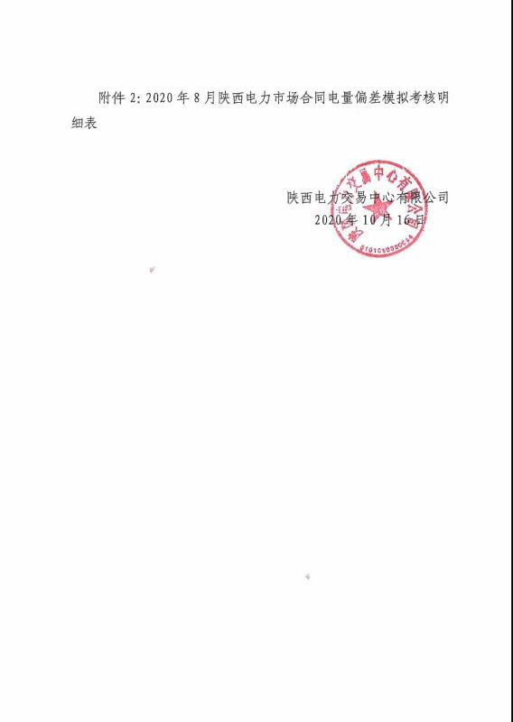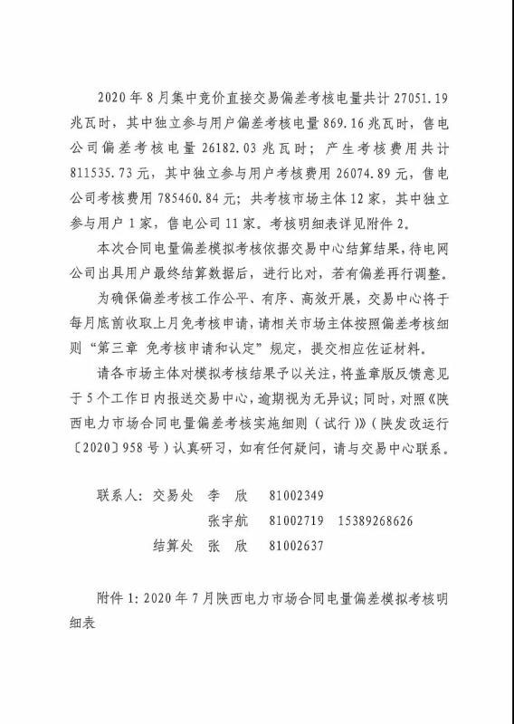 2020年7-8月陜西電力市場合同電量偏差模擬考核公告