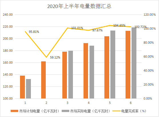 圖1 2020年上半年市場(chǎng)電量完成情況