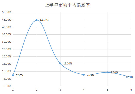 圖2 2020年1-6月份市場(chǎng)平均偏差率