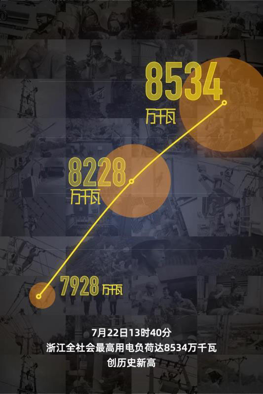 今日13時(shí)40分,浙江全社會(huì)最高用電負(fù)荷達(dá)8534萬千瓦,創(chuàng)歷史新高,比去年最高值(8517萬千瓦)增長(zhǎng)17萬千瓦。杭州、寧波地區(qū)全社會(huì)用電負(fù)荷沖破千萬,全省7個(gè)地區(qū)電網(wǎng)用電負(fù)荷創(chuàng)歷史新高。目前,浙江電網(wǎng)運(yùn)行平穩(wěn),全社會(huì)供電正常有序。