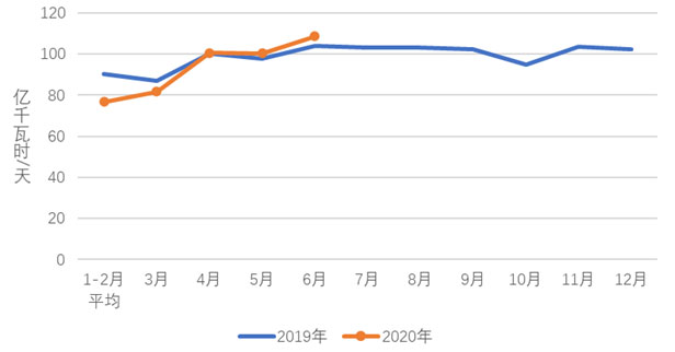 6月份,化工行業(yè)用電量382億千瓦時,同比增長1.8%,增速比上年同期提高1.0個百分點;建材行業(yè)用電量370億千瓦時,同比增長8.0%,增速比上年同期提高1.1個百分點;黑色金屬冶煉行業(yè)用電量523億千瓦時,同比增長4.0%,增速比上年同期回落8.5個百分點;有色金屬冶煉行業(yè)515億千瓦時,同比增長2.6%,增速比上年同期提高1.4個百分點。