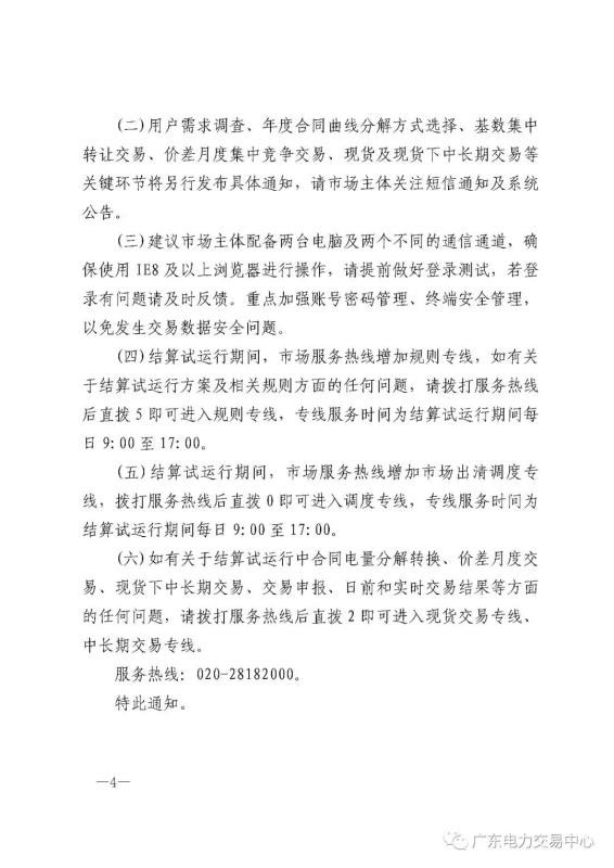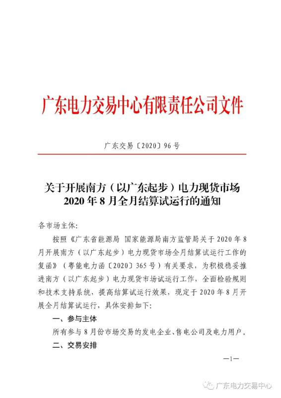 按照《廣東省能源局 國家能源局南方監(jiān)管局關(guān)于2020年8月開展南方(以廣東起步)電力現(xiàn)貨市場全月結(jié)算試運(yùn)行工作的復(fù)函》(粵能電力函[2020]365號)有關(guān)要求,為積極穩(wěn)妥推進(jìn)南方(以廣東起步)電力現(xiàn)貨市場試運(yùn)行工作,全面檢驗(yàn)規(guī)則和技術(shù)支持系統(tǒng),提高結(jié)算試運(yùn)行效果,現(xiàn)定于2020年8月開展全月結(jié)算試運(yùn)行,通知正文如下: