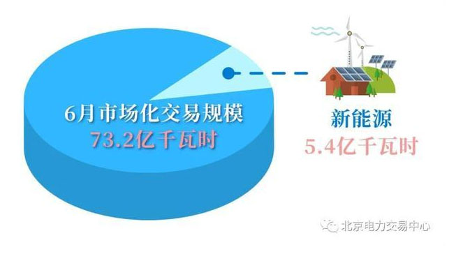2020年6月,北京電力交易中心在年度交易基礎(chǔ)上,開展月度、月內(nèi)省間市場化交易18筆,交易規(guī)模73.2億千瓦時(shí),其中,新能源5.4億千瓦時(shí)。
