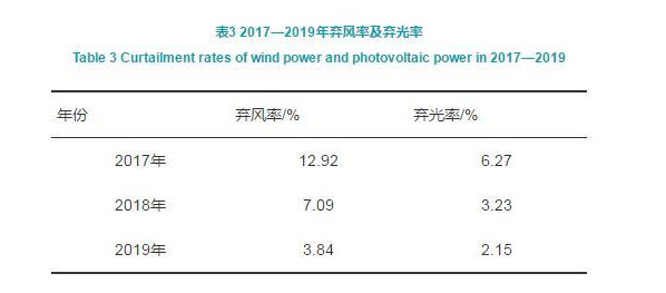8)建立促進(jìn)清潔能源消納的市場(chǎng)化機(jī)制,持續(xù)推動(dòng)清潔能源清潔轉(zhuǎn)型發(fā)展。針對(duì)中國(guó)“三棄”問題,積極開展清潔能源省間交易、替代交易、富余可再生能源現(xiàn)貨交易等促進(jìn)清潔能源消納的市場(chǎng)化交易機(jī)制,有效提升了清潔能源消納水平,實(shí)現(xiàn)了棄電量和棄電率“雙降”的目標(biāo)。如表3所示,近年來,棄風(fēng)率及棄光率不斷降低,有效地促進(jìn)了中國(guó)能源結(jié)構(gòu)清潔低碳轉(zhuǎn)型。