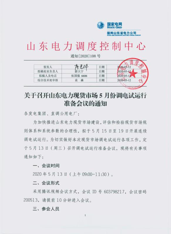 5月12日,山東電力調(diào)度控制中心發(fā)布了《關(guān)于召開(kāi)山東電力現(xiàn)貨市場(chǎng)5月份調(diào)電試運(yùn)行準(zhǔn)備會(huì)議的通知》(以下簡(jiǎn)稱(chēng)《通知》)?!锻ㄖ贩Q(chēng)為加快推進(jìn)山東電力現(xiàn)貨市場(chǎng)建設(shè),評(píng)估和檢驗(yàn)現(xiàn)貨市場(chǎng)規(guī)則體系和參數(shù)的合理性,擬于5月15日至19日開(kāi)展連續(xù)調(diào)電試運(yùn)行。