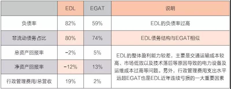 基于當前的市場情況,EDL的財務表現(xiàn)又如何呢?我們可以通過與泰國國家電力局(Electricity Generating Authority of Thailand,下簡稱EGAT)一探究竟。
