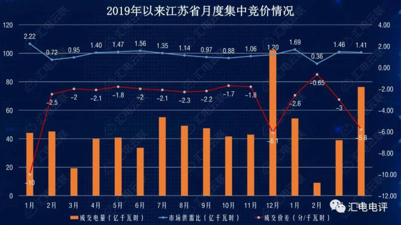 本次月度集中競(jìng)價(jià)價(jià)差高達(dá)5.8分/千瓦時(shí),同時(shí)成交電量超過(guò)76億千瓦時(shí),量?jī)r(jià)同時(shí)放“大”。除2019年第12月特殊情況外(詳見(jiàn):交易復(fù)盤:江蘇省月度掛牌價(jià)差高達(dá)15.6分/千瓦時(shí)),交易量和讓利水平都創(chuàng)一年來(lái)新高。