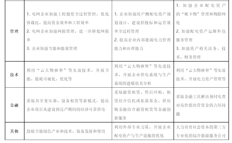 總之,上述三類電力成本性質(zhì)不同,對企業(yè)經(jīng)營和投融資能力影響機制不同,因此,降低企業(yè)電力成本,需要圍繞三類電力成本從政策、市場、技術(shù)、管理和金融等多方面發(fā)力,因地制宜,綜合施策。