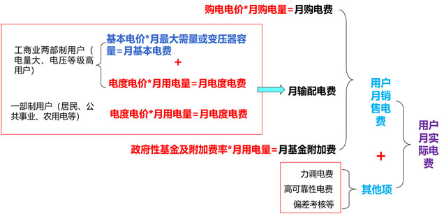 銷售電價=購電電價+輸配電價+政府性基金及附加